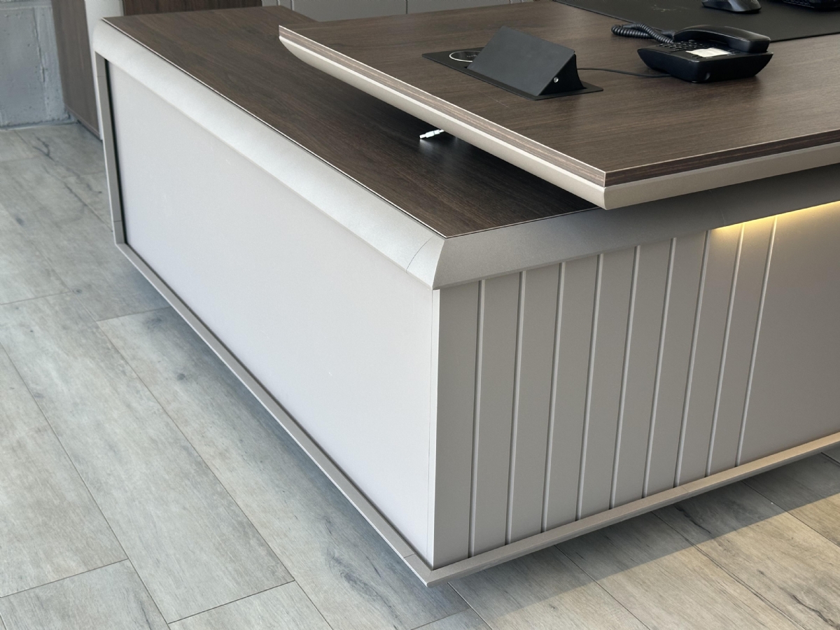 Geniş çalışma alanı, ofis evraklarınızı ve teknolojik cihazlarınızı düzenli tutmanızı sağlar. Sağlam ayak yapısı ve estetik çizgileri, ofisinizde hem dayanıklı hem de göz alıcı bir atmosfer yaratır